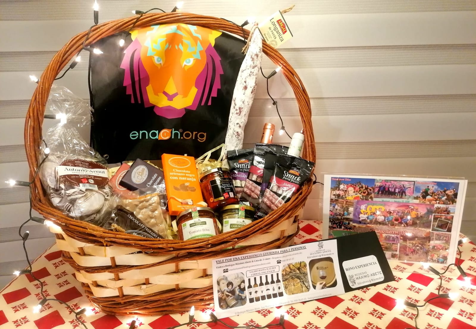 El grupo deportivo “Train with TMax” de Pamplona ha organizado una exclusiva rifa solidaria de lotes navideños en favor de ENACH en la que se han expedido 300 boletos con una donación de 5€ por boleto que darán acceso al sorteo de 9 lotes navideños con productos donados por Aceite Sandúa, Bodegas Arriezu, Bodegas Máximo Abete , Bodegas Ochoa, Bodegas Nekeas, Bodegas Ojuel, Bodegas Piedemonte, Bodegas Quaderna Via, Caramelos El Caserío de Tafalla, Chocolates y Turrones Pedro Mayo, Chocolates Obrador Subiza, Conservas El Navarrico, Conservas Medrano, Aceite y barritas Ecoprolive-Isanatur , Embutidos Argal, Escape Room Over Time Pamplona, Galletas Ecológicas BELSI , Zumos premium Halaco Navarra Internacional, Museo de la Conserva, Biscotes Panaderías Arrasate, Polvorones Antonio Anaut, Paellera La Valenciana.